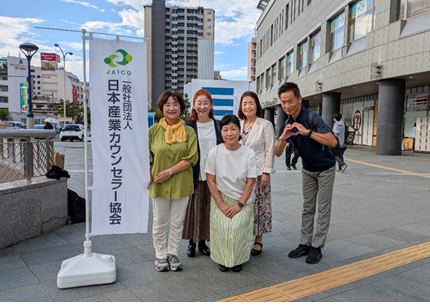 自殺予防週間における「働く人の電話相談室」(9月13日開催)の広報活動として、前日の12日(金)に高松駅前でチラシ配布を行いました。