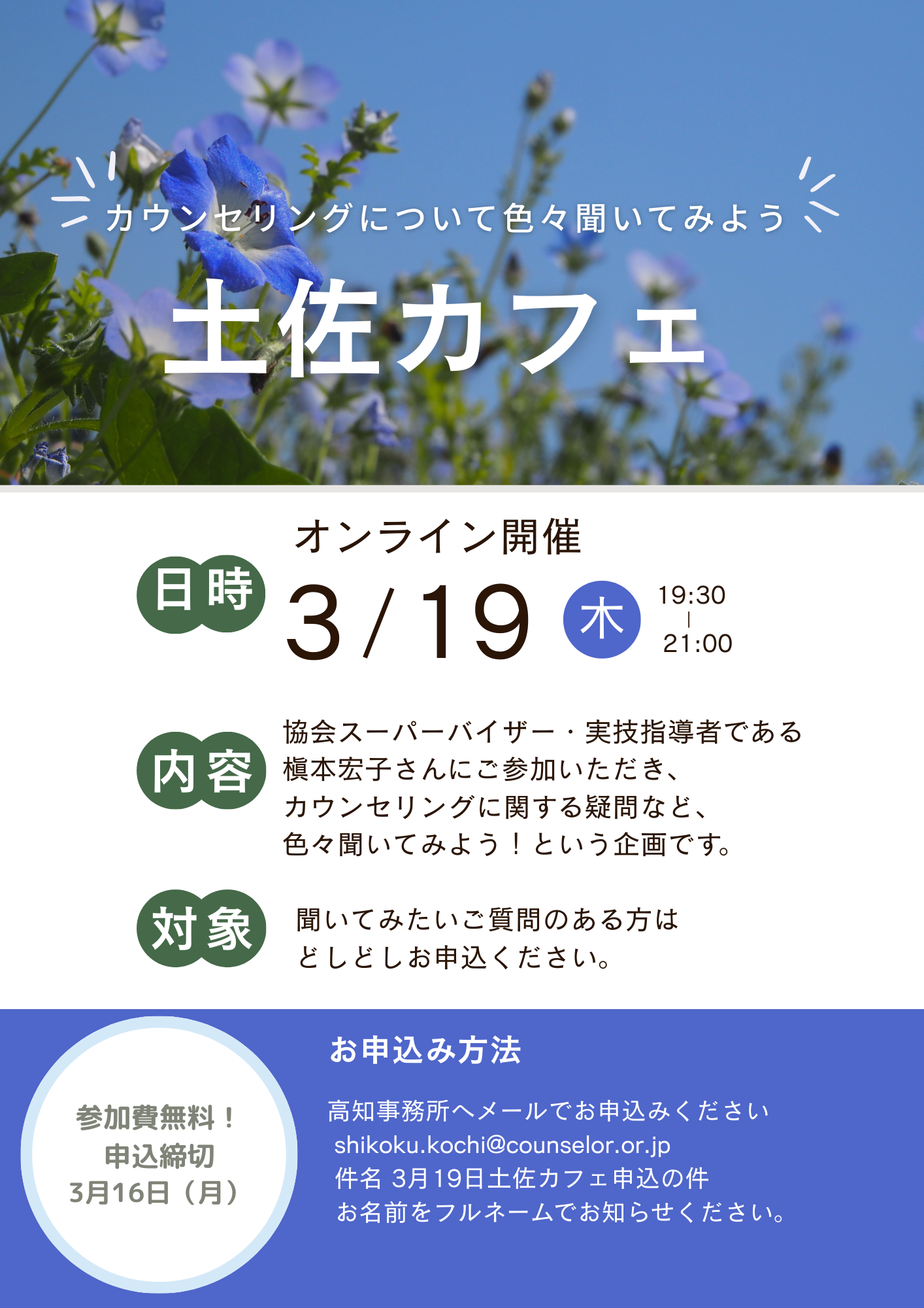 協会スーパーバイザー・実技指導者である槇本宏子さんにご参加いただき、カウンセリングに関する疑問など、色々聞いてみよう!という企画です。